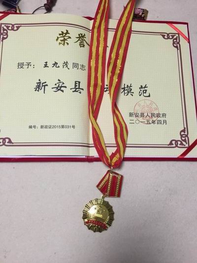 2015年04月29日晚,縣委,縣政府、縣工會(huì )在新安縣舉行了五一勞動(dòng)模范表彰大會(huì ),我公司總經(jīng)理王九茂榮獲縣勞動(dòng)模范稱(chēng)號。王總是我公司全體員工學(xué)習的楷模。