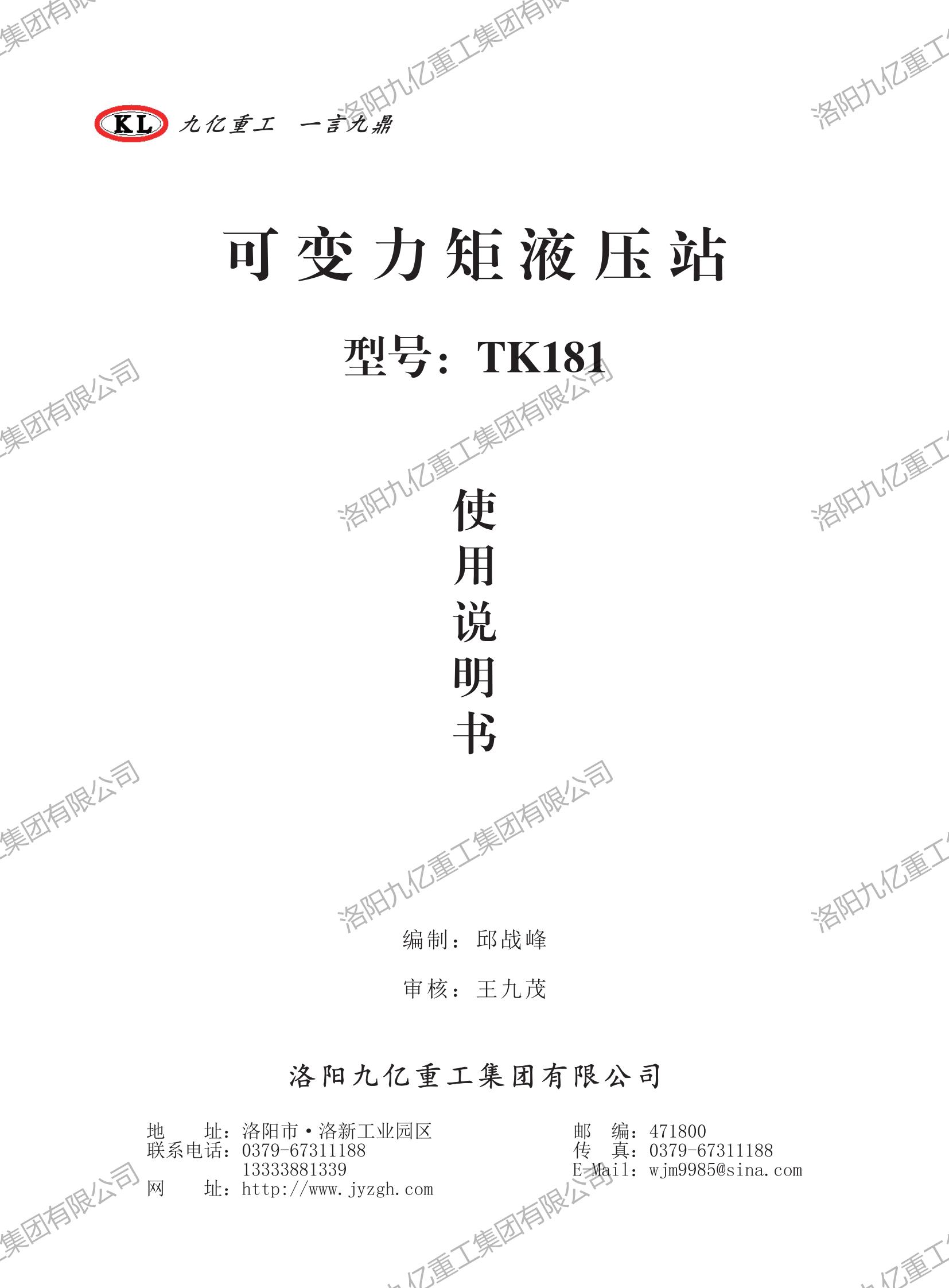 可變力矩液壓站TK181使用說(shuō)明書(shū)
