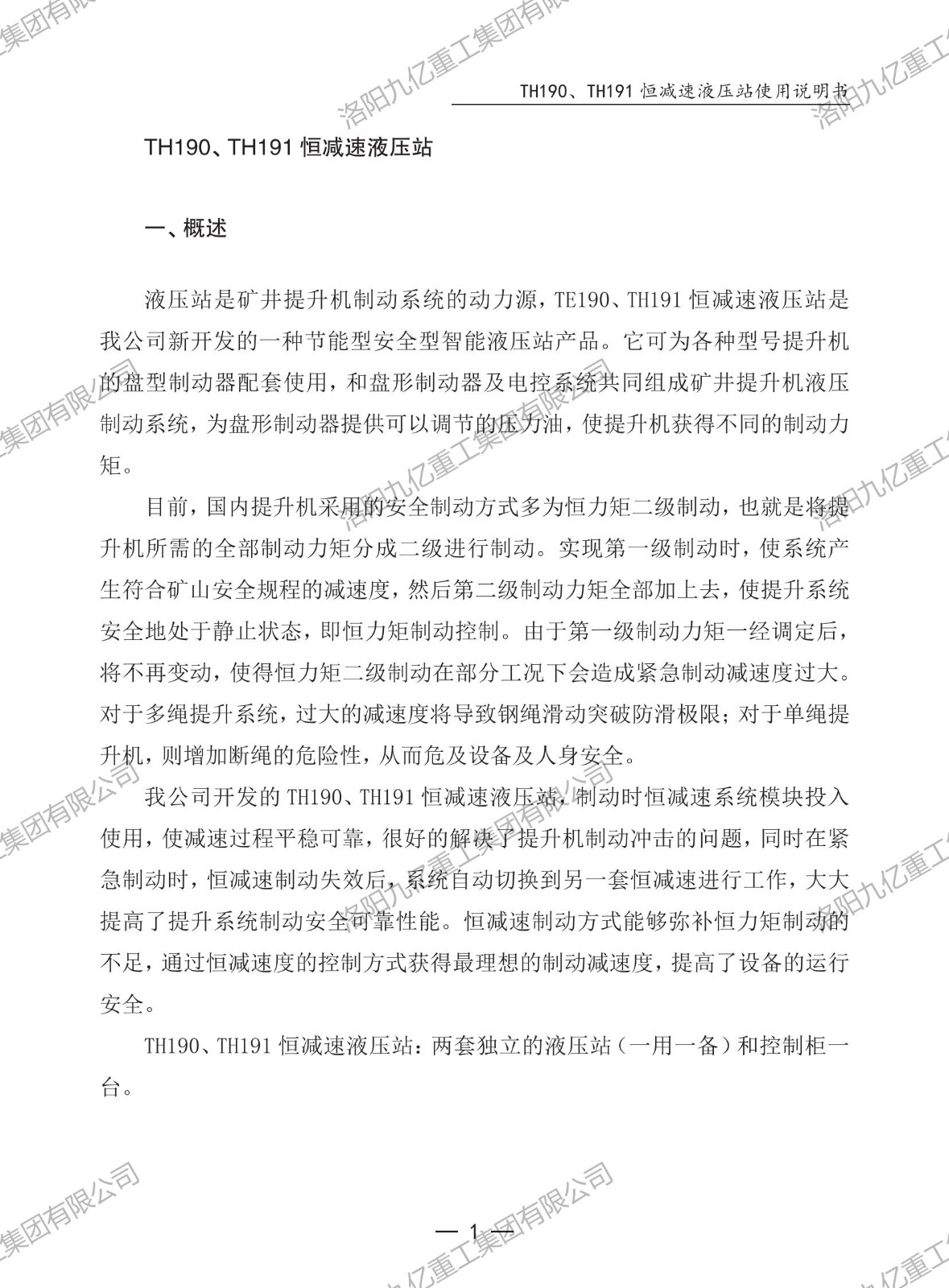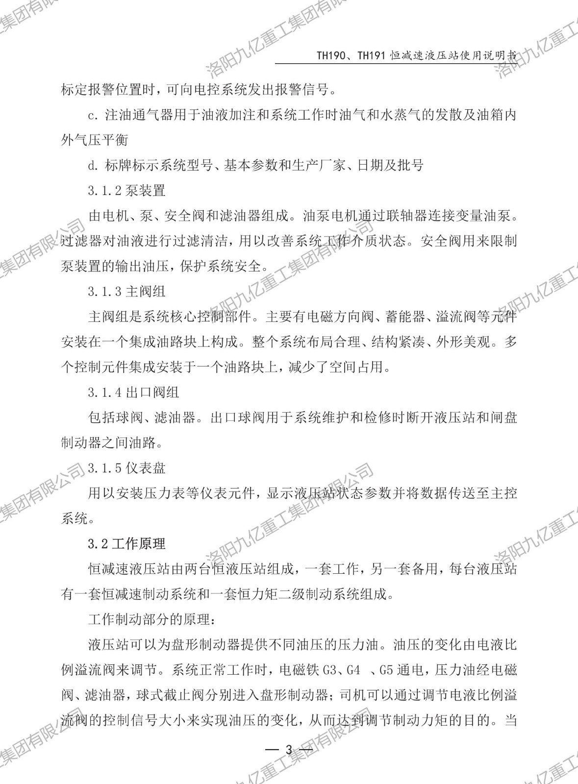 恒減速液壓站TH190、TH191使用說(shuō)明書(shū)